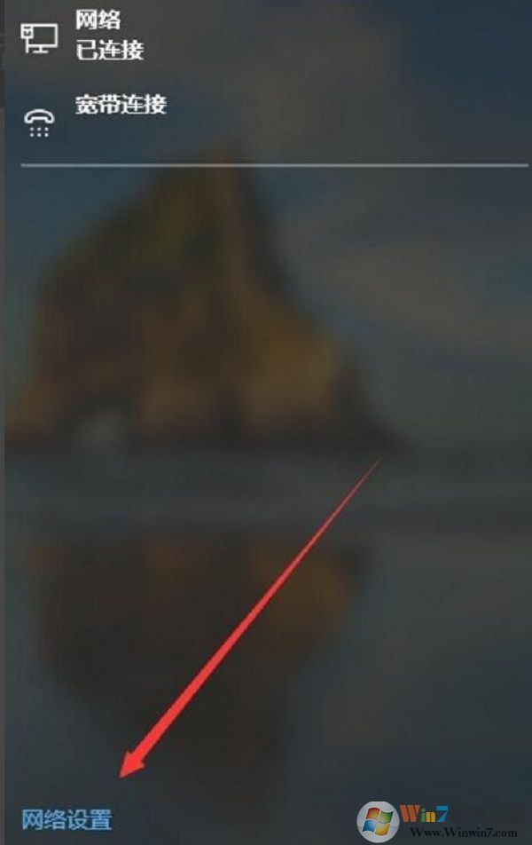 1、在右下角点击网络链接,然后在弹出的窗口中选择左下角的网络设置,