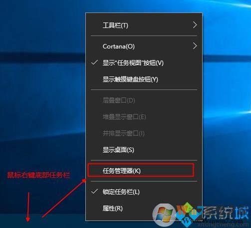 1、windows系统桌面底部的任务栏,鼠标右键点击任务栏;