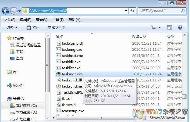 1、进入C:\Windows\System32目录,找到taskmgr.exe,双击打开;