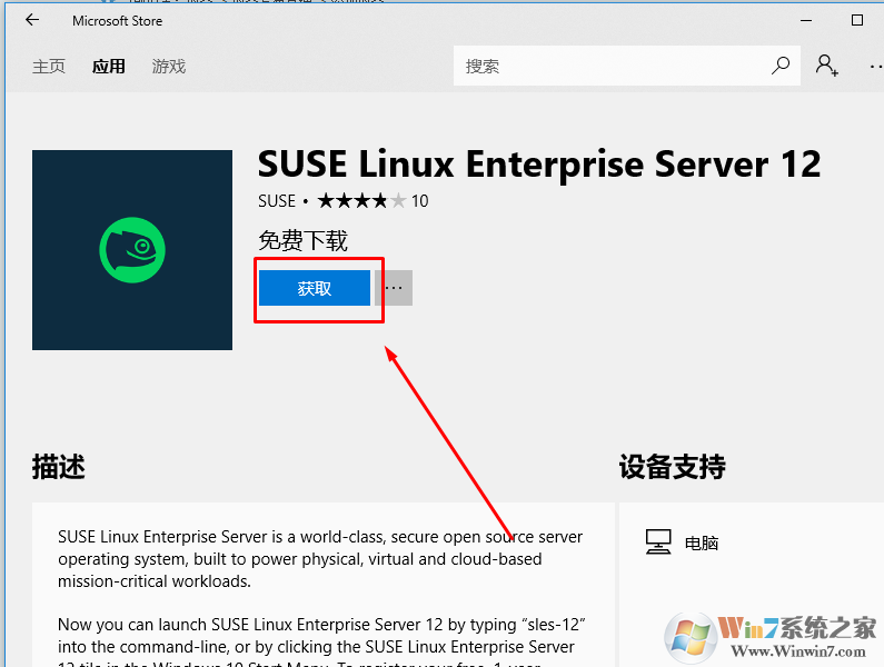 3、然后在获得的搜索内容中选择自己想要的Linux系统,点击获取即可执行安装了。
