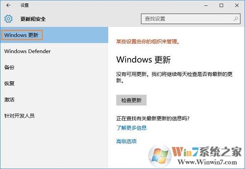 1、查看win10系统版本,并更新到最新版本。设置-》更新和安全-》windows更新(左侧)。