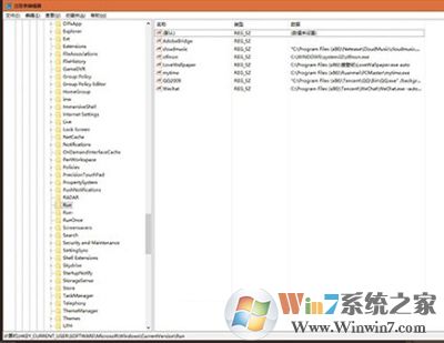 2、定位到“HKEY_CURRENT_USER\Software\Microsoft\Windows\CurrentVersion\Run