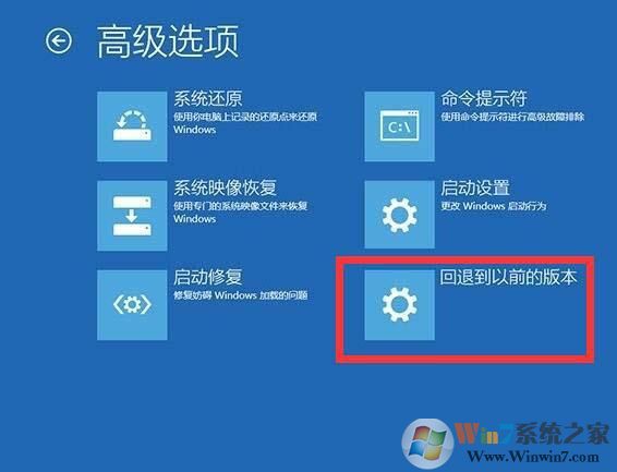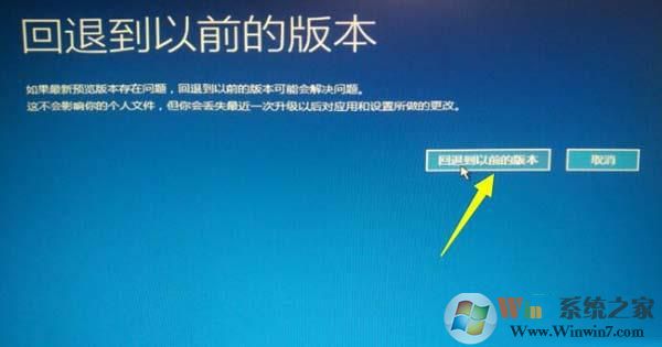 3、此时将显示“退回到以前的版本”界面,直接点击回退到以前的版本,即可进入win10版本回退恢复模式,如图所示: