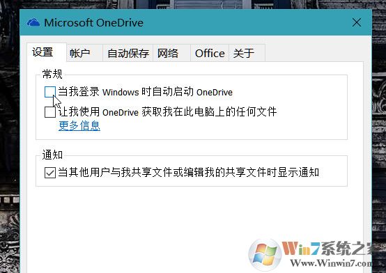 如果你只是需要暂时停用OneDrive,以后有需要的时候还想继续使用的话,那么就没有必要彻底卸载,可以通过OneDrive设置中停用即可,具体如下: