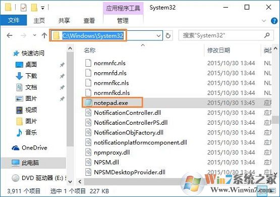 3、如是64位系统,打开C:Windows\SysWOW64文件夹,32位系统打开C:Windows\system32,找到并选中“notepad.exe”,点击打开,之后就可以打开TXT文本文档了。如图所示: