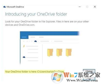 如果你想改变你的同步OneDrive文件夹的位置,单击靠近屏幕底部的“更改”按钮。 否则,单击“下一步”使用默认位置。