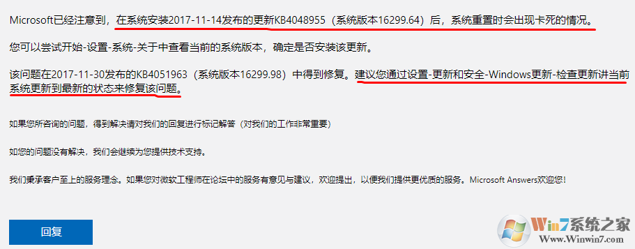 其实解决方法微软在上方已经给出了,但是更新之后无法重置的问题很多时候都会有出现,如果是最新版本的更新的话此方法是不适用的。遇到最新版本的更新我们需要使用相反的方法来解决此问题。也就是