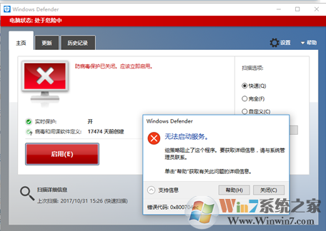 以上就是windows defender 无法启动,提示错误代码800704ec的修复方法了,希望对大家有所帮助。