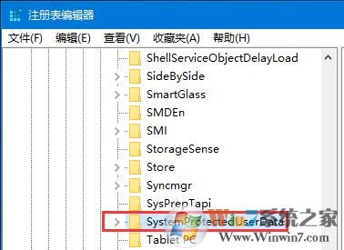 4、在注册表中依次展开:HKEY_LOCAL_MACHINE\SOFTWARE\Microsoft\Windows\CurrentVersion\SystemProtectedUserData