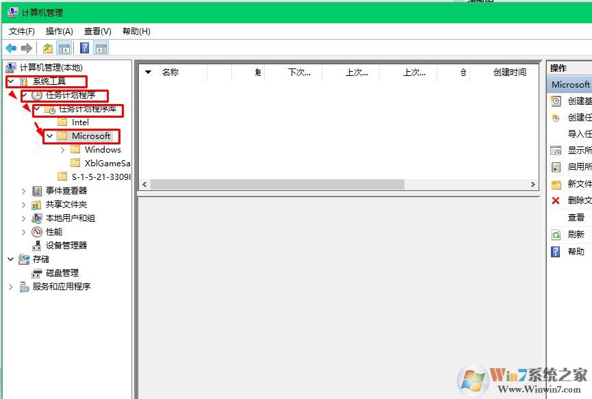 2、然后逐一进入“系统工具→任务计划程序→任务计划程序库”。
