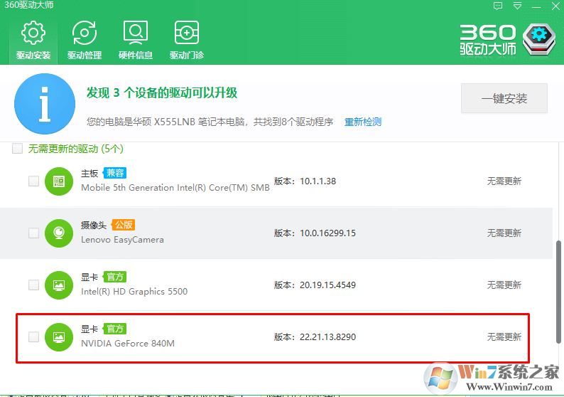 更新显卡驱动程序,将显卡驱动程序更新到最新版本。我们可以借助第三方软件如360驱动大师等来完成。