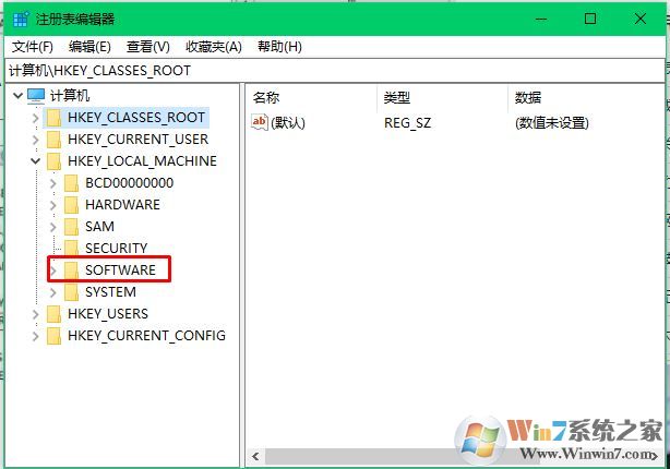 3、在展开的文件夹中,找到“SOFTWARE”点击红色框内箭头所示的文件夹前的+按扭