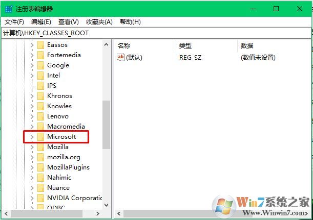 4、在展开的文件夹中,找到“Microsoft”点击红色框内箭头所示的文件夹前的+按扭