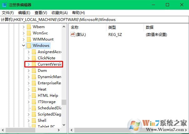6、在展开的文件夹中找到“CurrentVersion”点击红色框内箭头所示的文件夹+按扭