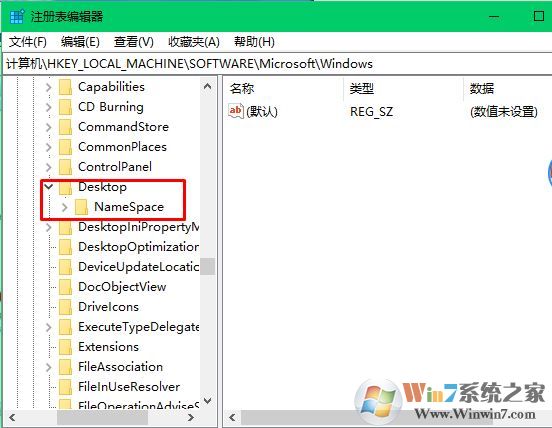 9、点击红色框内的“NameSpace”文件夹,右边出现“默认”等