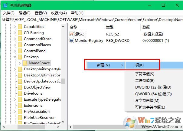 11、点击新建项后,出现如下界面,将新出现的“项”的名字(红色)重命名为“{645FFO40—5081—101B—9F08—00AA002F954E}”。。。。请注意,要把大括号也带入