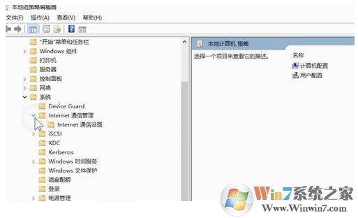 然后依次展开“计算机配置”-“管理模板”-“系统”-“Internet通信管理