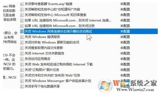 然后我们单机“Internet通信设置”,之后双击“关闭Windows网络连接状态指示器活动测试”,勾选“已启用”后点击“确定”就可以了