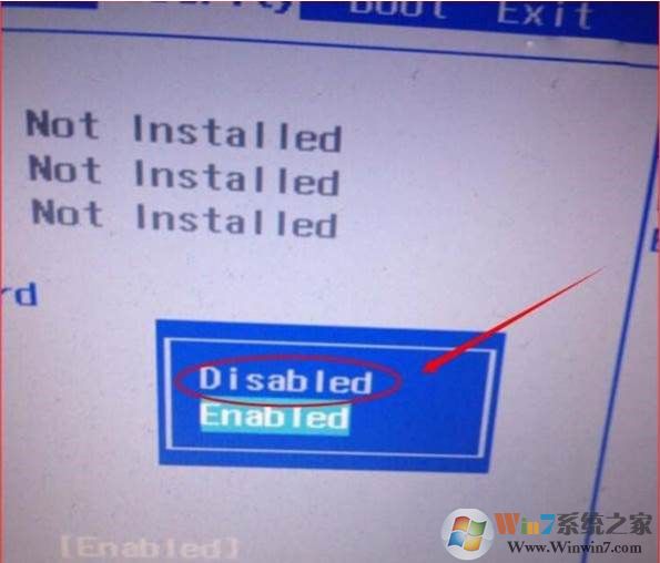 再按键盘上下键,选中“Disabled”,意思是关闭SecureBoot,选中后按回车键,