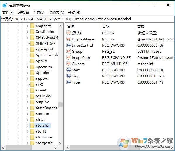 后来继续查找,发现win10系统需要将 HKEY_LOCAL_MACHINE System CurrentControlSet Services storschi 里面的startoverride 文件夹删除才可以