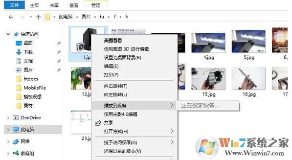 在Win10系统右键菜单中有一个播放到设备选项,很多用户反馈在查看图片或视频时,鼠标移动到右键菜单中的播放到设备时就会出现卡顿现象,这是由于这时会搜索可播放的设备,不过通常大家都是不用的,如果你觉的这个功能导致Win10使用起来不爽,那么我们可以删除它。