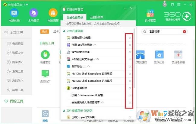 右键菜单管理软件可以很容易的删除,这里推荐360中的右键菜单管理工具。