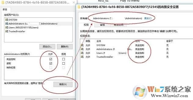 1、首先进入Win10注册表,定位到HKEY_CLASSES_ROOT\CLSID\{7AD84985-87B4-4a16-BE58-8B72A5B390F7},属性-----高级,将该主键的所有者设置为Administrators组,同时将Administrators组设置为完全控制权限。。