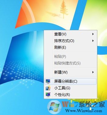 1、在电脑的桌面空白处,鼠标单击右键,在弹出的列表中选择“屏幕分辨率”。