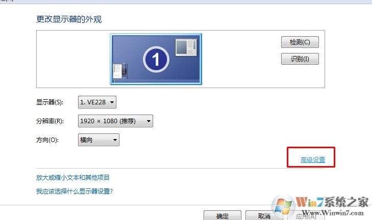 2、在弹出的这个“屏幕分辨率”页面中,点击右下角的高级设置。