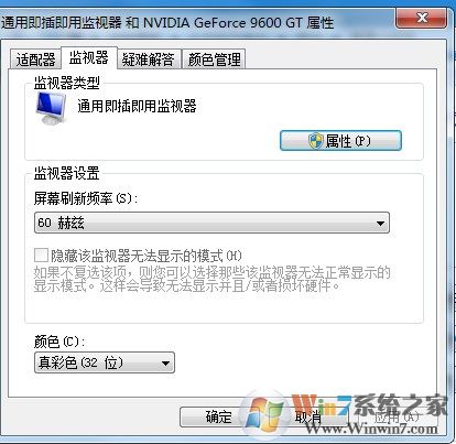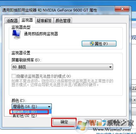 4、把颜色选项中的“真彩色(32位)”改为“增强色(16位)”,点击应用。