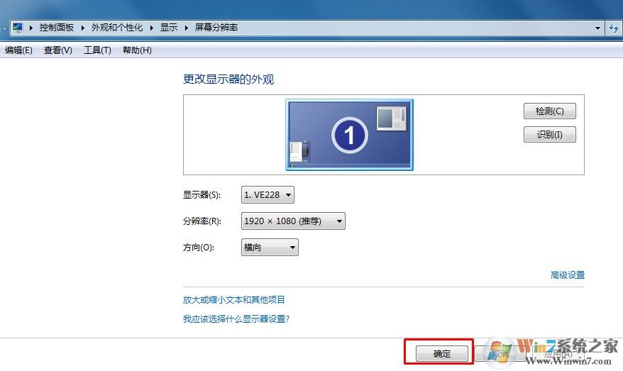 5、回到“屏幕分辨率”页面中,同样点击确定。