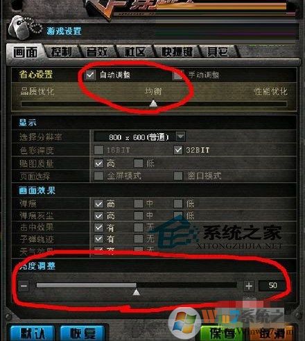 6、现在,可以登录上穿越火线,点击游戏设置,设置如下图所示,亮度不用调太光,效果会不佳的,亮度调整为50左右即可。