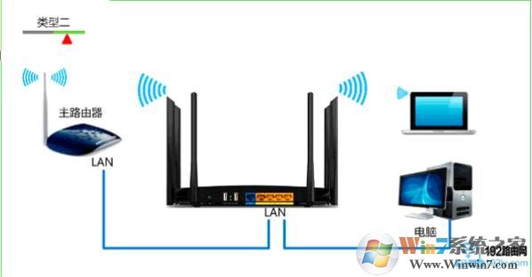 如果还有电脑需要用网线连接路由器2上网,请连接到路由器2的LAN(1\2\3\4)中的空闲接口。 路由器2 WAN口不管,此时以交换机方式,WAN口没用。