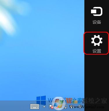 第一步、移动鼠标指针至屏幕右上角,直至出现超级按钮(Charm菜单),点击“设置”。