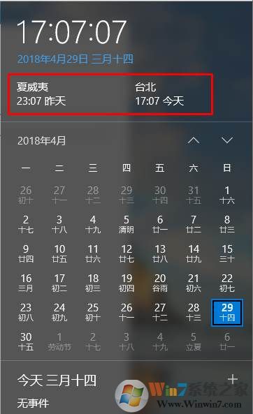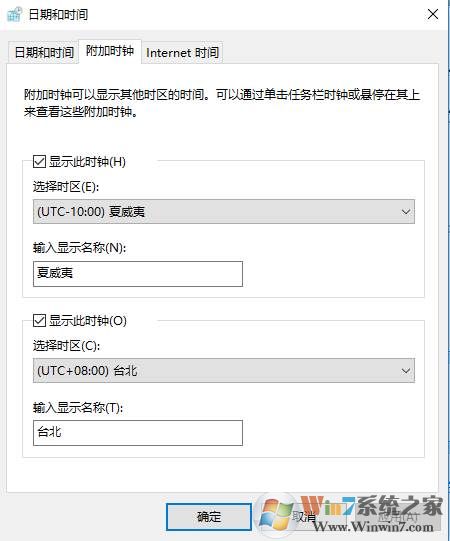 4、好了,勾选显示此时钟,可以附加两个,选择附加的区域,显示名称。然后确定。