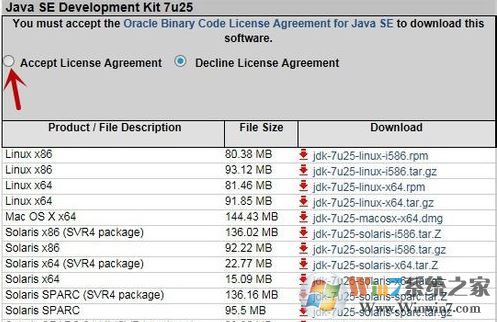 3、然后我们进入下载页面,点击accept license,并选择对应的windows x86的软件进行下载,如图所示: