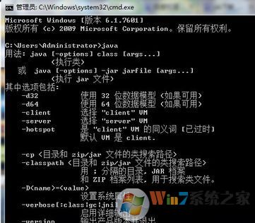 9、在命令提示符中键入:输入java 按下回车键,看到如下画面,就证明你的java环境配置成功啦!