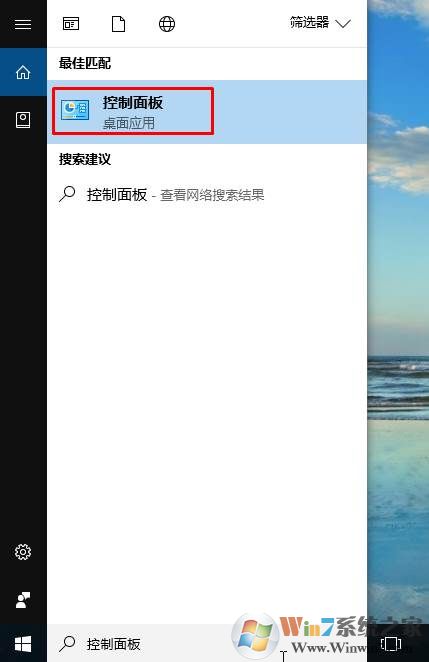 1、在小娜搜索框中输入 控制面板 并打开;