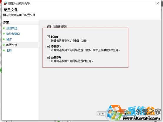 7、勾选“域”,“专用”,“公司”,点击“下一步”;