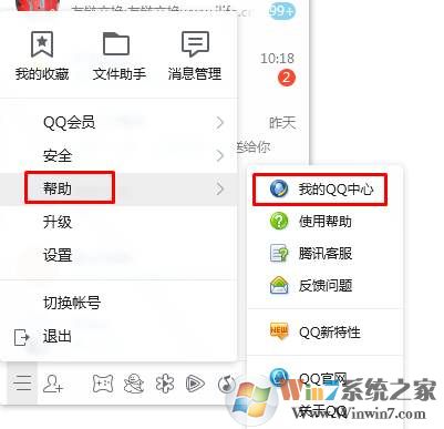 1、点击QQ面板上的三条杠,然后选择“帮助”——“我的QQ中心”;