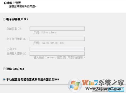 3、点击手动配置服务器设置或其他服务器类型,点击下一步;