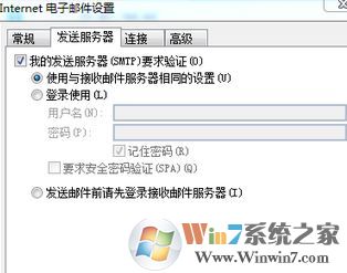 5、点击发送服务器,勾选我的发送服务器要求验证;