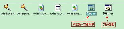 1、下载压缩包解压后,双击”安装.bat”进行安装,这样在鼠标右键就会插入一个“Unlocker”的选项;