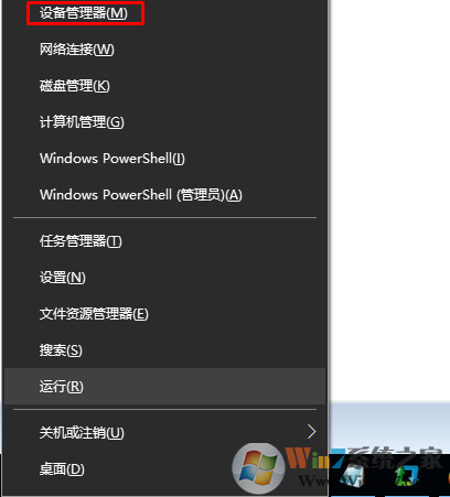 1、首先按下win+x然后在菜单中选择设备管理器;