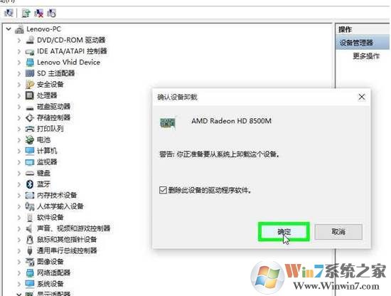4、勾选删除此设备的驱动程序软件选项,点确定即可。