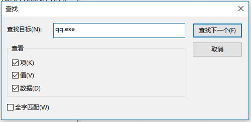 3、输入要查找的数据名,如软件名称,软件程序名,查找到后删除;