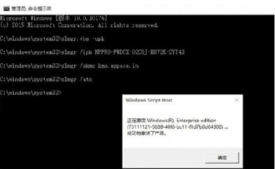 5、输入以下命令:slmgr /ato按回车键后将弹出窗口提示:“成功的激活了产品”。至此,Win10正式企业版系统激活成功。