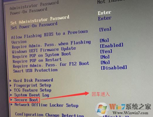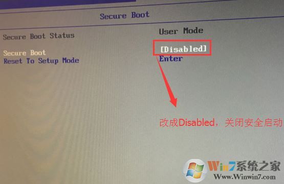 1、开机一直按F2或(FN+F2)进入BIOS,按→方向键切换到Security,选择Secure Boot回车设置成Disabled,如图: