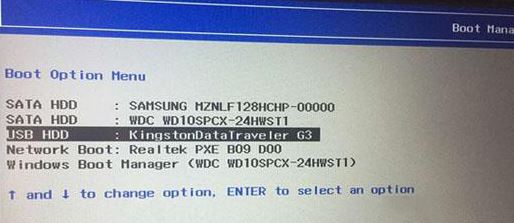 6、插入制作好的U盘启动盘,重启按F12或FN+F12调出启动管理对话框,选择USB HDD识别到U盘启动进入PE,回车;