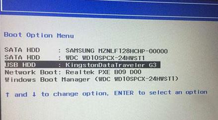 5、插入制作好的U盘启动盘,重启按F12或FN+F12调出启动管理对话框,选择USB HDD识别到U盘启动进入PE,回车;